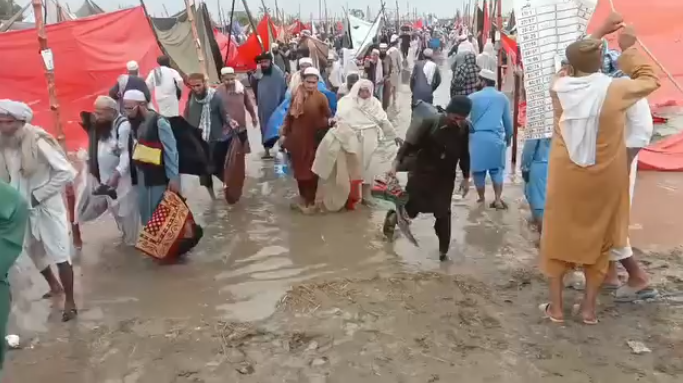 Lahore: Heavy rainfall in Raiwind and surrounding areas disrupted the annual religious congregation, leaving thousands of participants facing severe difficulties. On the very first day, the gathering site was flooded,