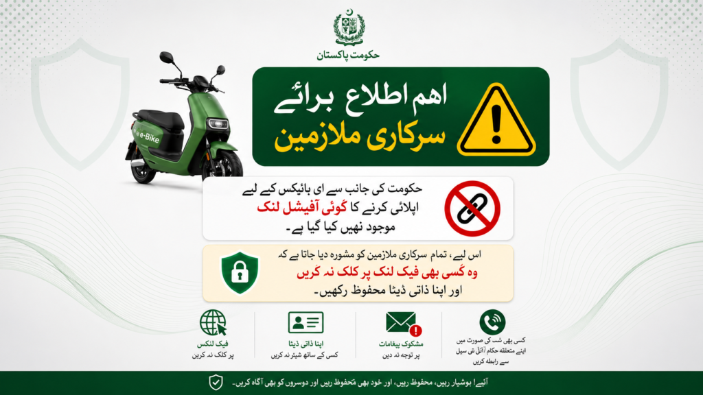 Islamabad: Government of Pakistan has issued an important advisory for public sector employees, warning them not to trust or apply through unofficial e-bike scheme links circulating online. Authorities clarified that