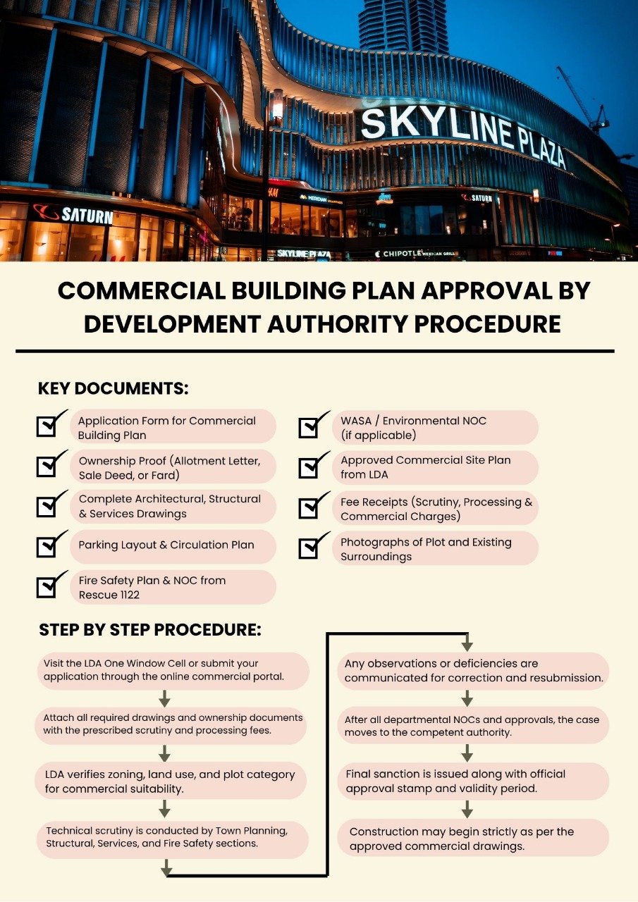 Application form submission Architectural plan review Zoning compliance check Structural design verification NOC documents collection Fee payment process Committee approval meeting Final approval issuance.