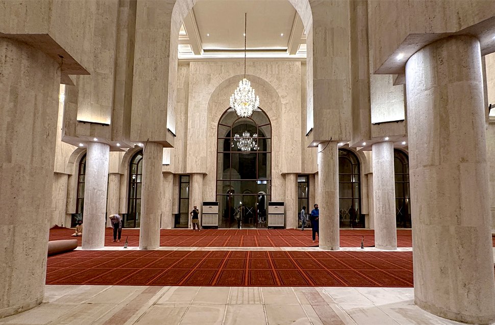 The mosque is described by Lake City as a large capacity facility for congregational prayers and community gatherings, with design language that blends traditional Islamic motifs with contemporary construction, using strong geometry, calligraphy and patterned detailing to shape the experience of light and space. Public communications around the project also note a major opening event held on 27th Ramadan, 18 April 2023.