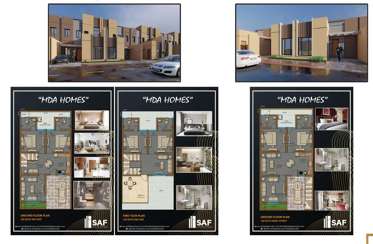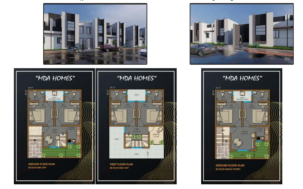 The project is being developed in two major locations managed by MDA. The first location is the New Malir Housing Project known as MDA Scheme 1 on Link Road, Karachi, which is part of the master planned Karachi development with road networks, sewerage systems and essential services already provided. The second location is Taiser Town Scheme 45 near the Northern Bypass in Karachi, offering easy access to the Superhighway and surrounding urban and commercial hubs. MDA Homes includes villa options in plot sizes of 80 sq yd, 100 sq yd, 120 sq yd and 200 sq yd with easy quarterly installment plans designed to make home ownership more accessible.