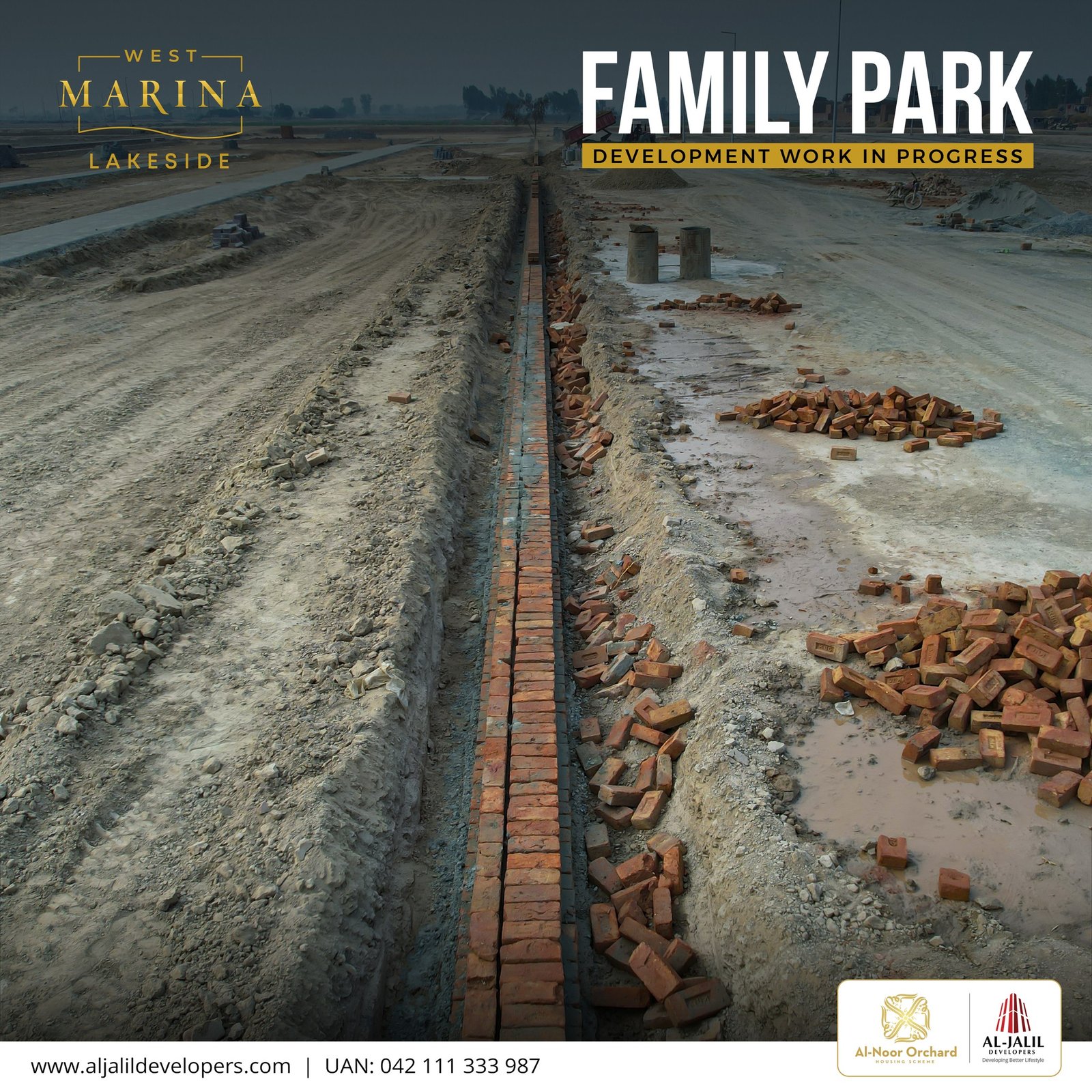 Al Noor Orchard West Marina is a planned residential development designed to offer modern living within an organized and well-structured community. The project focuses on creating residential plots, internal road networks, utility corridors and community facilities supported by reliable infrastructure. Development activities include road construction, earthwork, drainage installation and utility works aimed at establishing a comfortable and long-term residential environment.