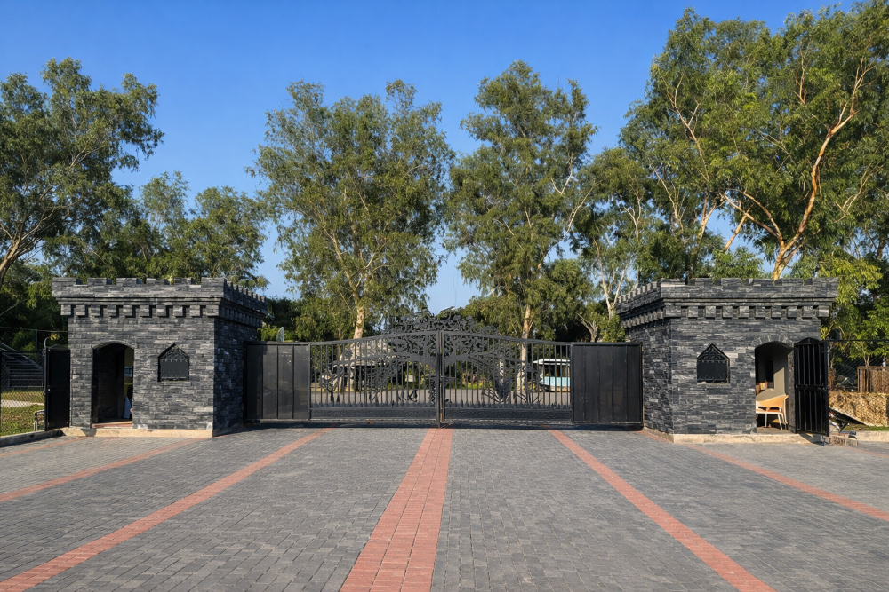 Alcazar Spanish Farmhouse Community is being promoted as a themed farmhouse lifestyle project on Main Bedian Road, Lahore, with a concept inspired by Spanish architecture and low-density countryside living. Based