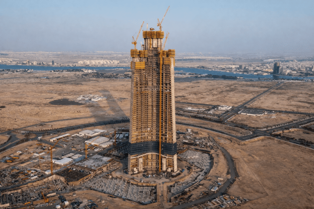 Construction of the Jeddah Tower has officially surpassed 80 completed floors, bringing the landmark closer to reclaiming the title of the world’s tallest building. Once completed, the tower is expected to rise above 1,000 meters, surpassing Burj Khalifa, which currently stands at 828 meters. After facing prolonged delays due to economic and geopolitical challenges, construction momentum accelerated in 2025, with completion now targeted for 2028. The mixed-use megastructure will include luxury hotels, offices, residential units, and the world’s highest observation deck, supported by 59 high-speed elevators. Featuring an energy-efficient design, the project reflects Saudi Arabia’s strategy to diversify its economy through iconic real estate and infrastructure developments.